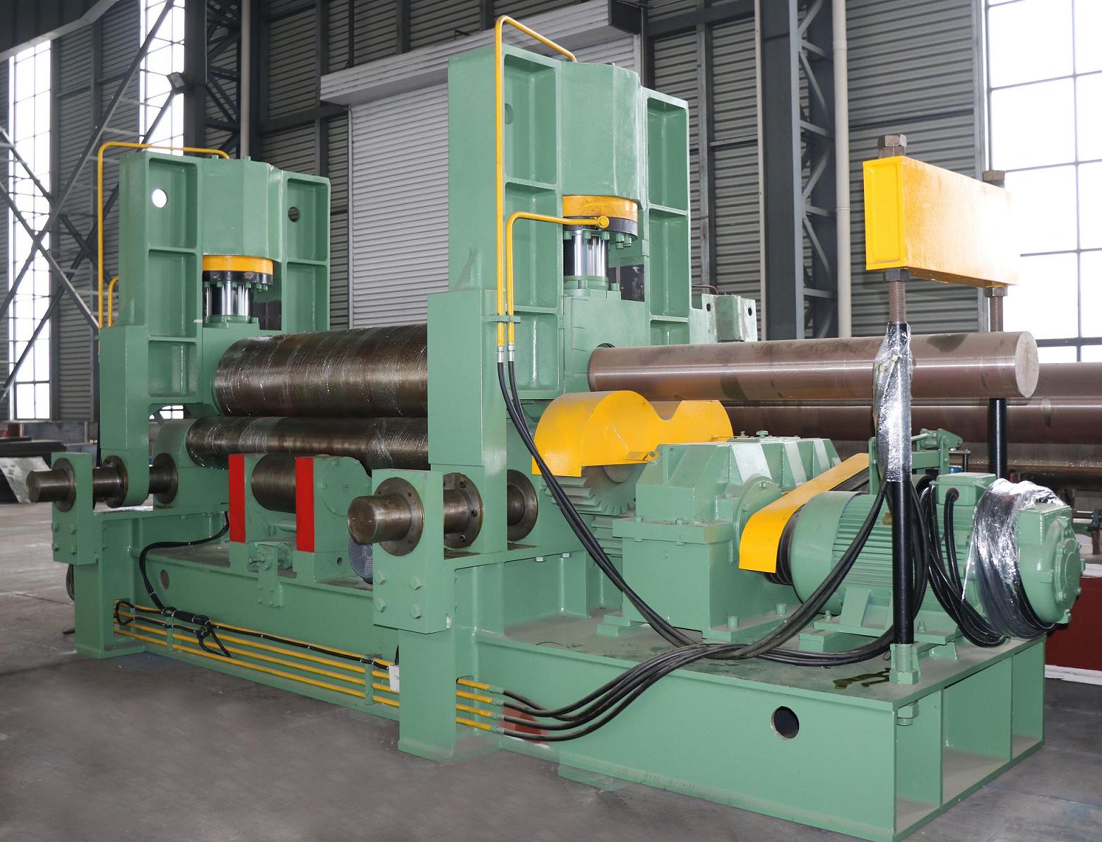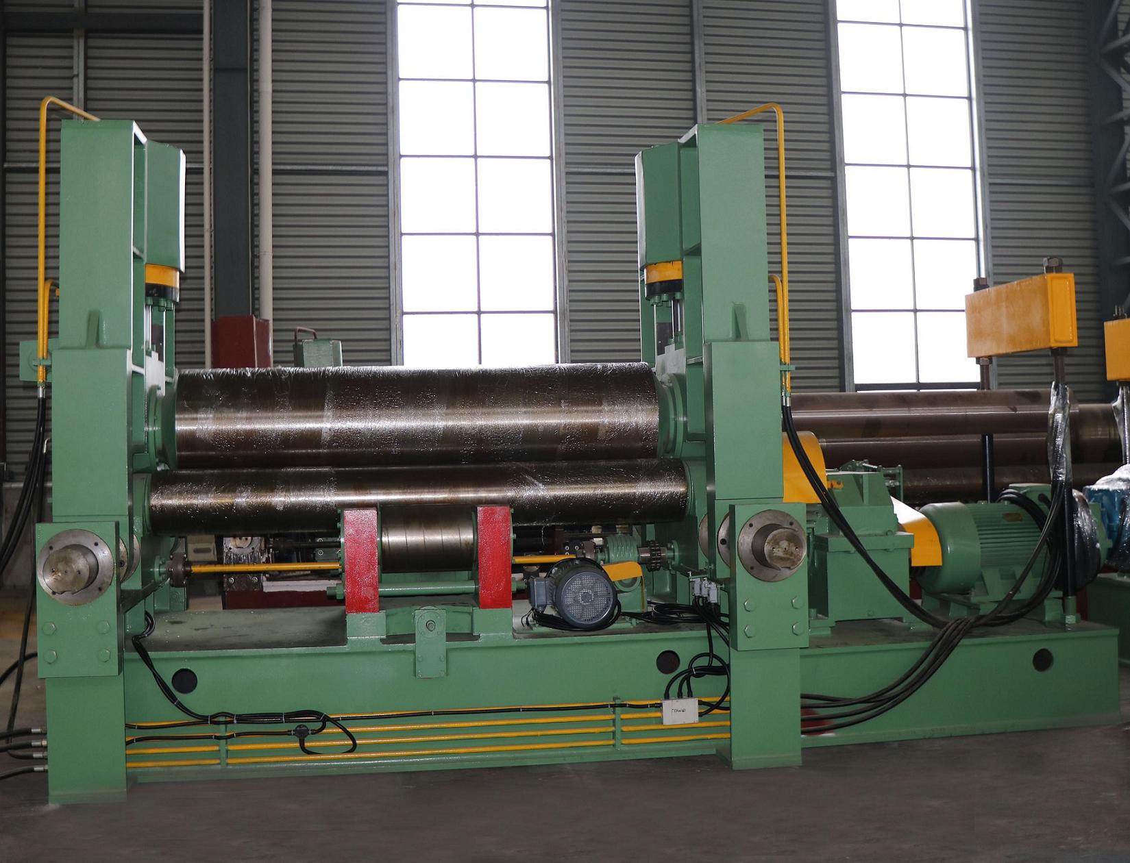 W11SNC万能式三辊卷板机是一种双夹板弯板机。 上辊为液压驱动。 上辊可水平和垂直调节,两个下辊是固定的。 所有合金钢辊均经过感应淬火和热处理。 经过感应淬火处理后,所有的辊都将被研磨和抛光。