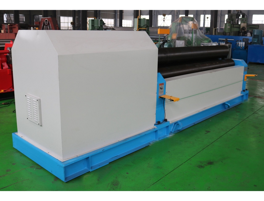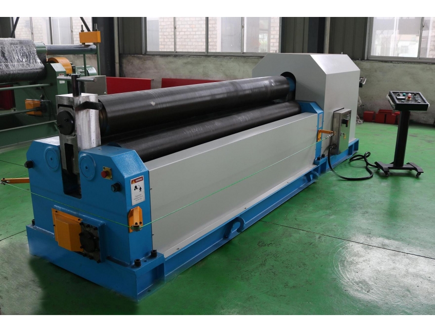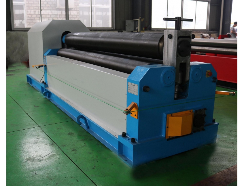 W11对称弯板机是全机械式三弯板机。 三个滚筒全部固定,像金字塔一样放置。