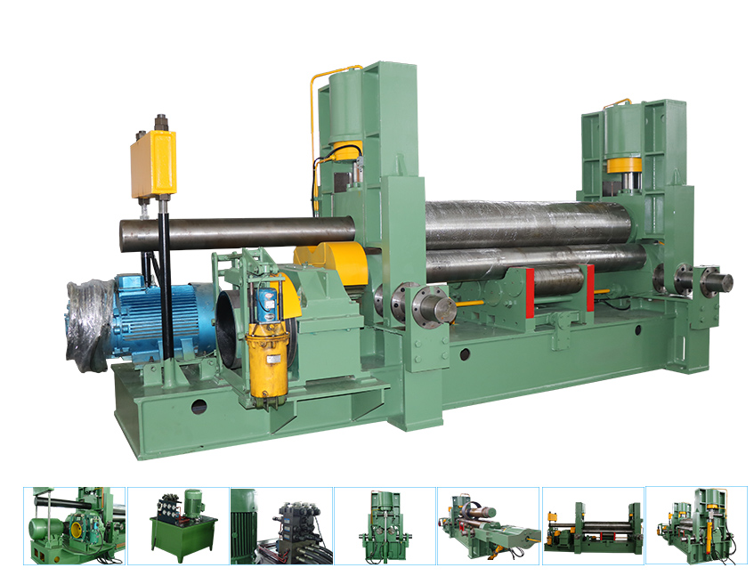 W11SNC万能式三辊卷板机是一种双夹板弯板机。 上辊为液压驱动。 上辊可水平和垂直调节,两个下辊是固定的。 所有合金钢辊均经过感应淬火和热处理。 经过感应淬火处理后,所有的辊都将被研磨和抛光。