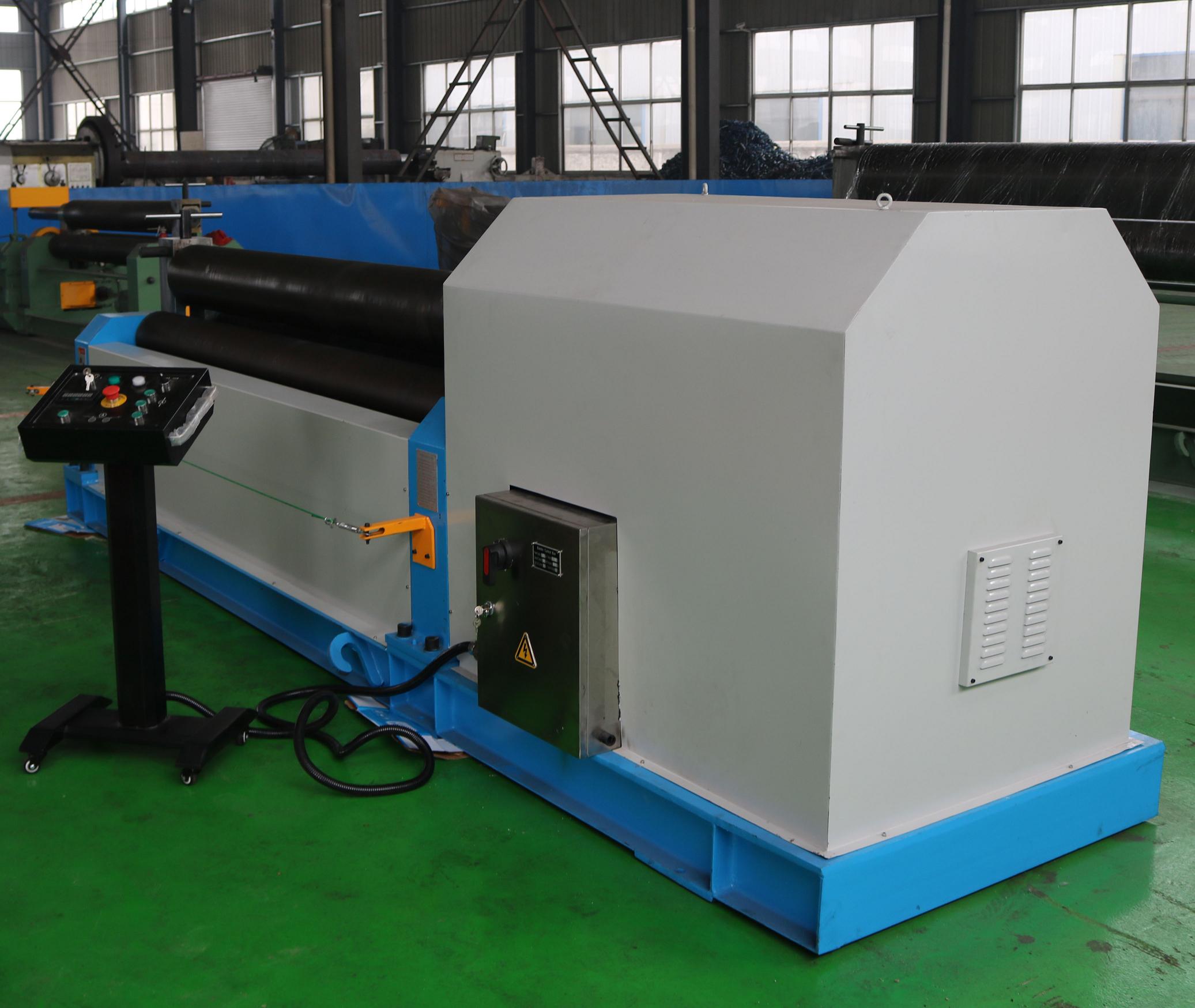 W11对称弯板机是全机械式三弯板机。 三个滚筒全部固定,像金字塔一样放置。