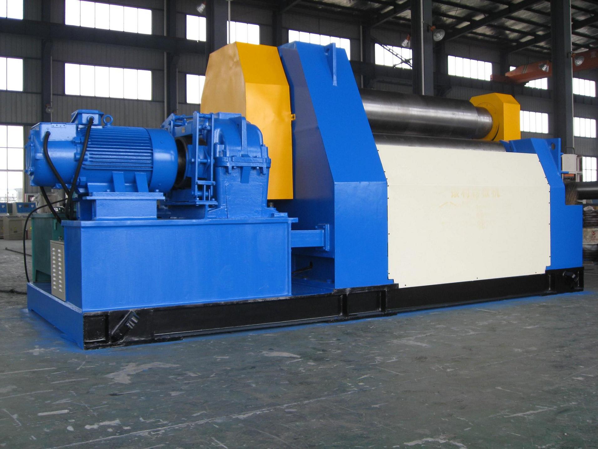 T4-40T2500W Plate Bending Machine is a type of double pinch plate bending machine. Each of the rollers is separate driven. Rollers rectilinear slide ways coated with antifriction material, no maintenance, suit to heavy duty loading, smooth and stable positioning. Spherical roller bearings are equipped on the rollers. All of the rollers in alloyed steel are induction hardening and heat treatment. All of the rollers will be grinded and polished after induction hardening treatment.Parameters